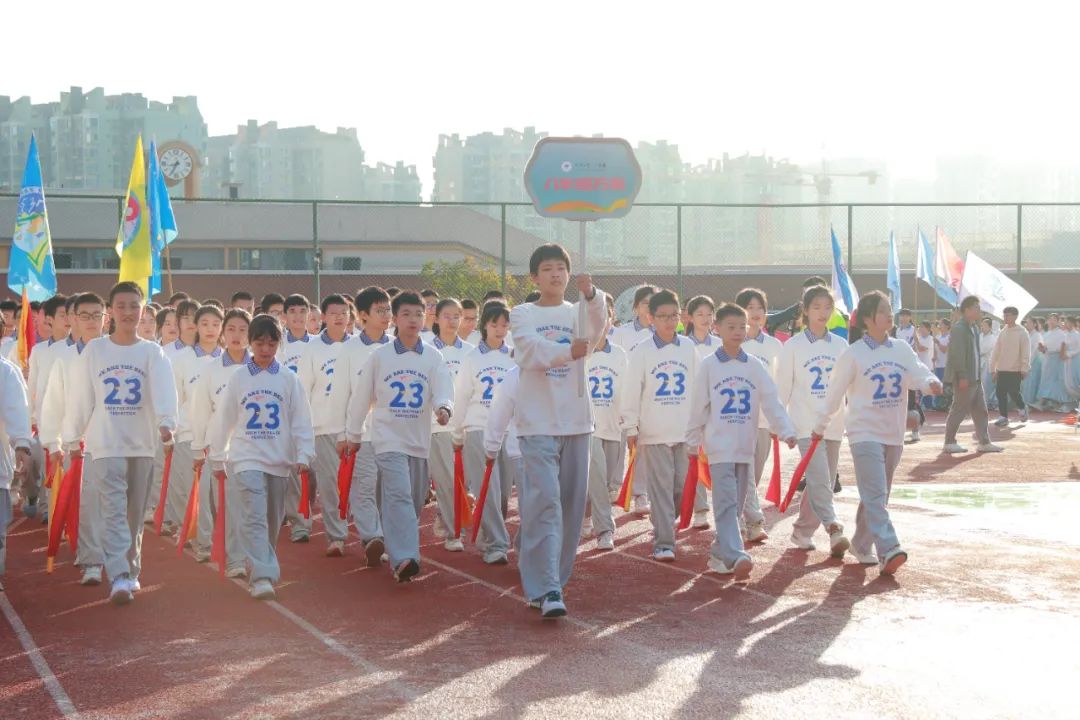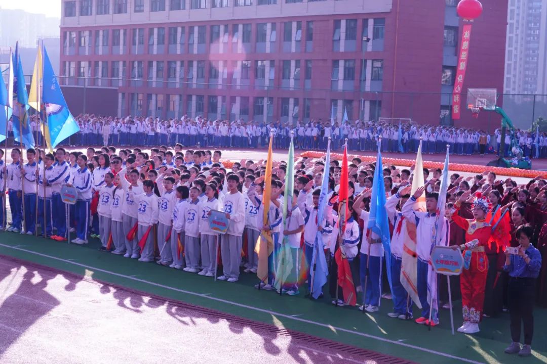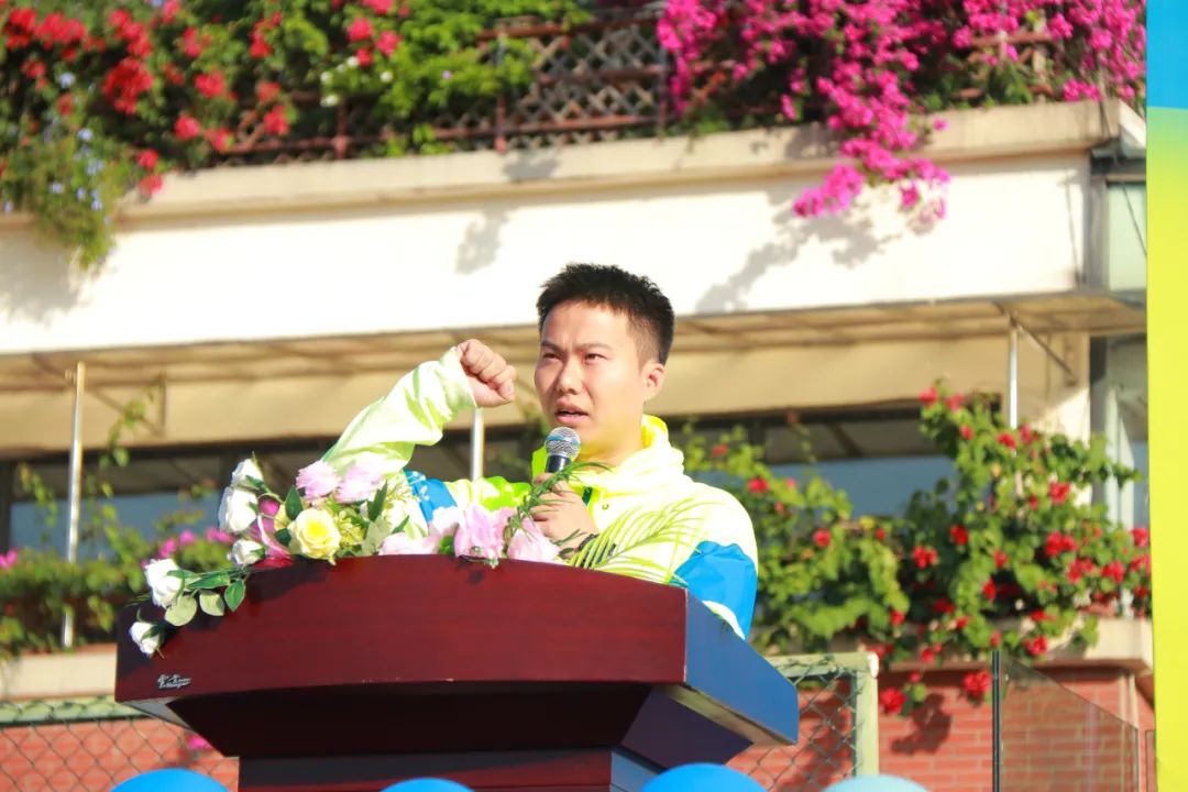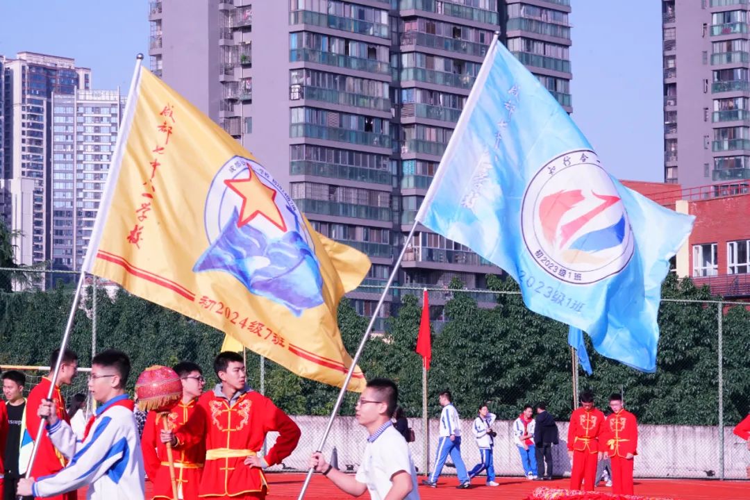 成都七中八一学校副校长杨勇老师以《扬体育精神 展青春风采》为题为开幕式致辞。他指出,在当今复杂的国际形势下,我们能在此安心举办运动会,离不开国家的发展,离不开祖国的强大。祖国的强大,需要我们每个人努力,但首先是我们要有强健的体魄。学校不仅培养成绩优秀者,我们更重视培养身体强健者、人格健全者、意志坚定者。德智体美劳全面发展,是七中八一不变的育人初心与使命。